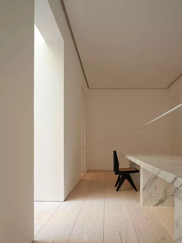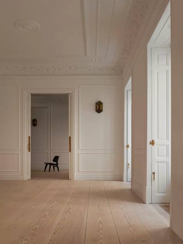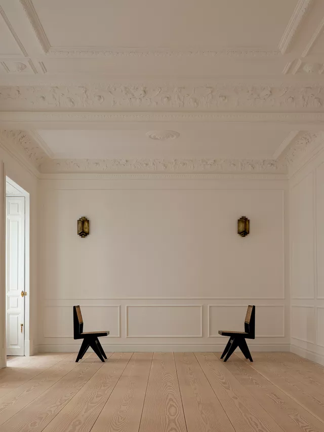 Este proyecto de rehabilitación en un edificio señorial en el barrio de Salesas de Madrid representa el equilibrio entre la conservación histórica y la funcionalidad contemporánea.