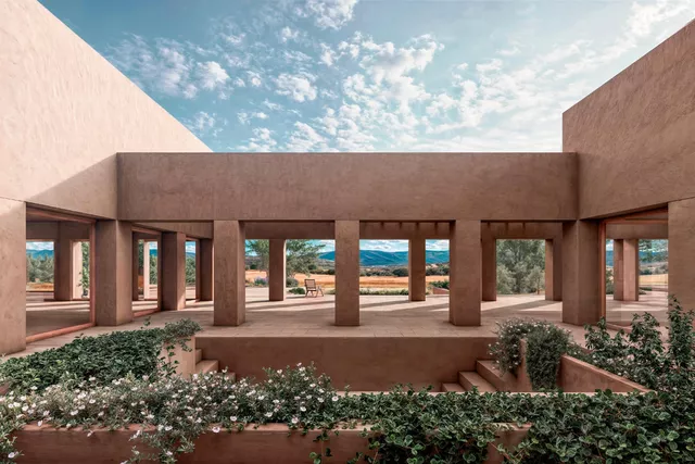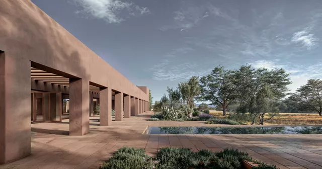 El tratamiento pétreo y monocromático de sus fachadas inspirado en el suelo arcilloso del lugar, caracteriza su envolvente. De este modo, la casa se percibe como una construcción natural que emerge del propio terreno, que desdibuja los límites entre el entorno natural y el nuevo volumen edificado.