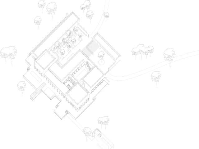 Con ese objetivo, la construcción se vertebra mediante un ritmo estructural continuo, que modula la edificación generando volúmenes de mayor escala que responden a las necesidades espaciales de las estancias principales del programa de día.