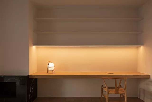 Therefore, open, flexible spaces were generated to allow natural light to enter the home, enabling easy reconfiguration of spaces through the use of lightweight partitions that act as necessary filters. This means the spaces can be divided up as the user needs during the day, whilst also generating visual fluidity. The space then is designed as a flexible setting, in which the user can choose the various corners where domestic life takes place within an environment where the light and the selected finishes have the capacity to generate a homogeneous, warm domestic atmosphere.