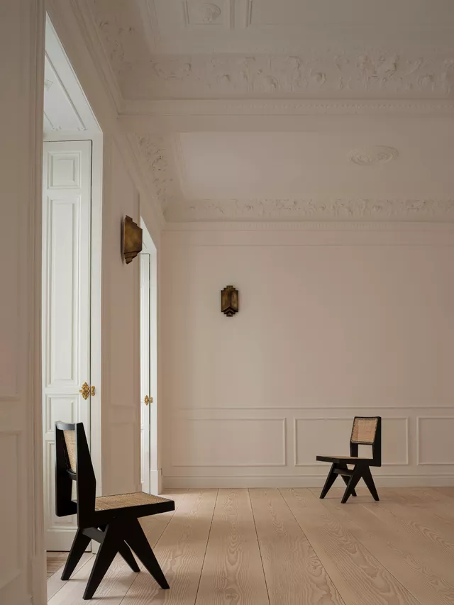 Este proyecto de rehabilitación en un edificio señorial en el barrio de Salesas de Madrid representa el equilibrio entre la conservación histórica y la funcionalidad contemporánea.