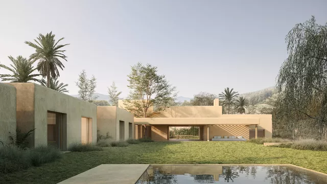 Vivienda unifamiliar en Sotogrande de una sola planta que desarrolla un volumen modular y fragmentado este- oeste, prácticamente ciego, hacia el extremo sur de la parcela en contacto con la vía pública. Dicha fragmentación de volúmenes visible desde el exterior actúa de límite hacia la vía pública debido a la ausencia de cierre perimetral. Cediendo generosamente espacio exterior de la parcela hacia los paseantes, sin penalizar la necesaria privacidad hacia el interior de la parcela. Dicho volumen, que alberga las distintas piezas estanciales del programa de vivienda, se abre para abrazar un gran jardín interior. De este modo el proyecto utiliza referencias de la arquitectura tradicional hispano árabe, donde la vivienda se cierra hacia el exterior y se abre hacia un frondoso jardín interior, promoviendo un entorno de privacidad y serenidad.