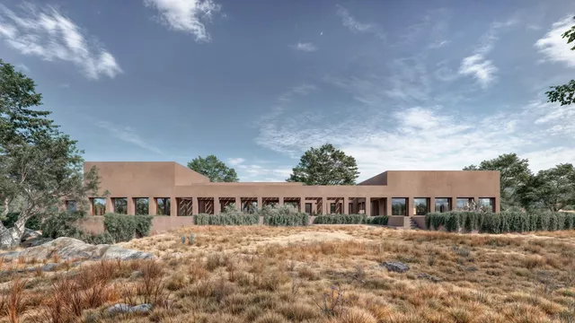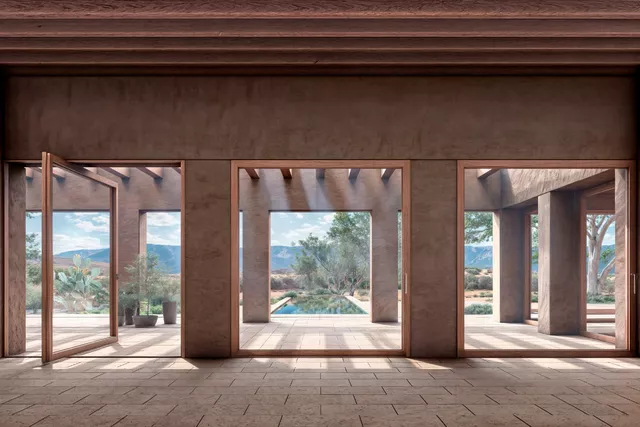 El tratamiento pétreo y monocromático de sus fachadas inspirado en el suelo arcilloso del lugar, caracteriza su envolvente. De este modo, la casa se percibe como una construcción natural que emerge del propio terreno, que desdibuja los límites entre el entorno natural y el nuevo volumen edificado.