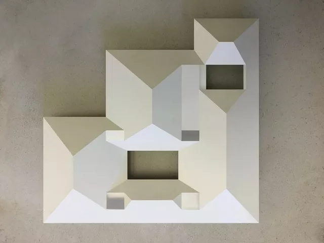 El programa de la casa se organiza a partir de un patio central y su distribuidor perimetral, en torno al cual se construyen 4 piezas rectangulares de diferente escala que albergan las distintas estancias interiores del programa doméstico. Los espacios exteriores se diseñan con el mismo detalle que los interiores con los que comparten tanto la cubierta como el propio plano del suelo.