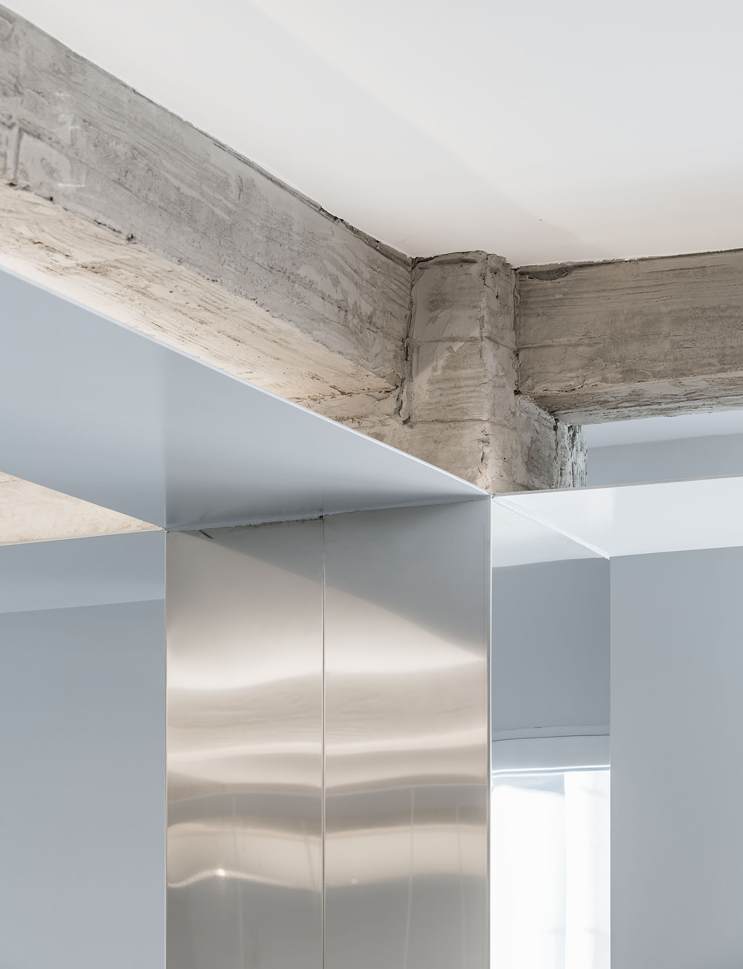 Tras la demolición, quedó expuesta la estructura original de hormigón armado y emergió un espacio mágico inundado de luz natural, donde el frescor del jardín se convirtió en el motor del proyecto. Por ello, la intervención busca alterar lo mínimo posible el límite entre el espacio interior y el exterior, logrando esto mediante grandes ventanales que enfatizan la relación con el espacio verde.