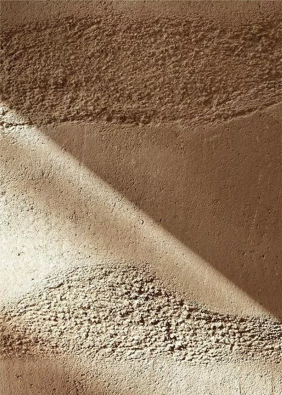 Dicho basamento se construye mediante un muro de tierra apisonada reutilizando el propio movimiento de tierra de la parcela, lo que refuerza la conexión visual y material con el entorno natural y hace un guiño en su materialidad hacia el mar, al recordar las formas naturales que surgen espontáneamente en la arena de la playa o la roca debido al movimiento de las mareas.
